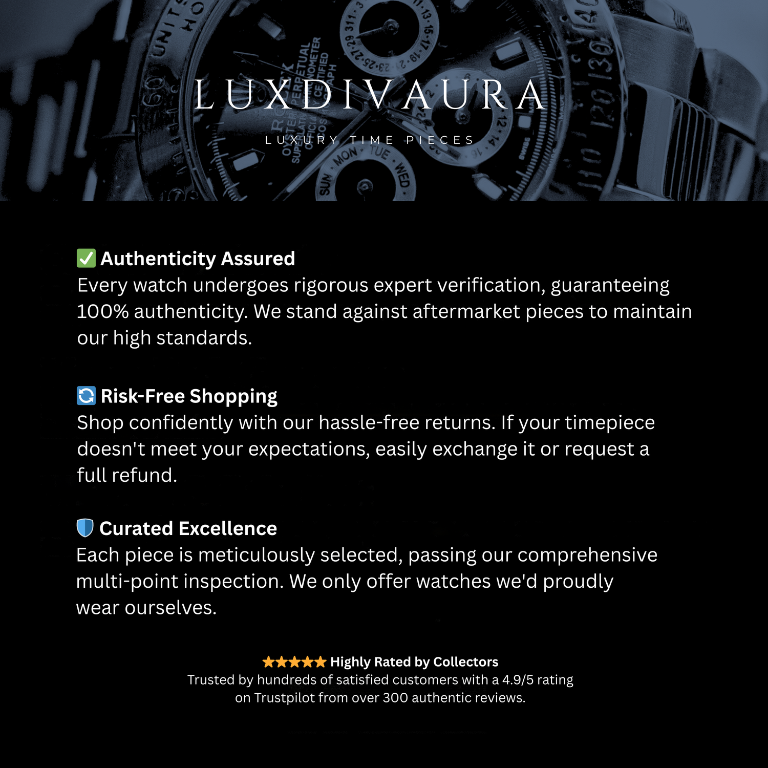 At LUXDIVAURA, We Curate Only The Finest Luxury Timepieces With Absolute Transparency, Verified Origins, And 24/7 Unparalleled Service. Trust In Elegance, Trust In Us.
