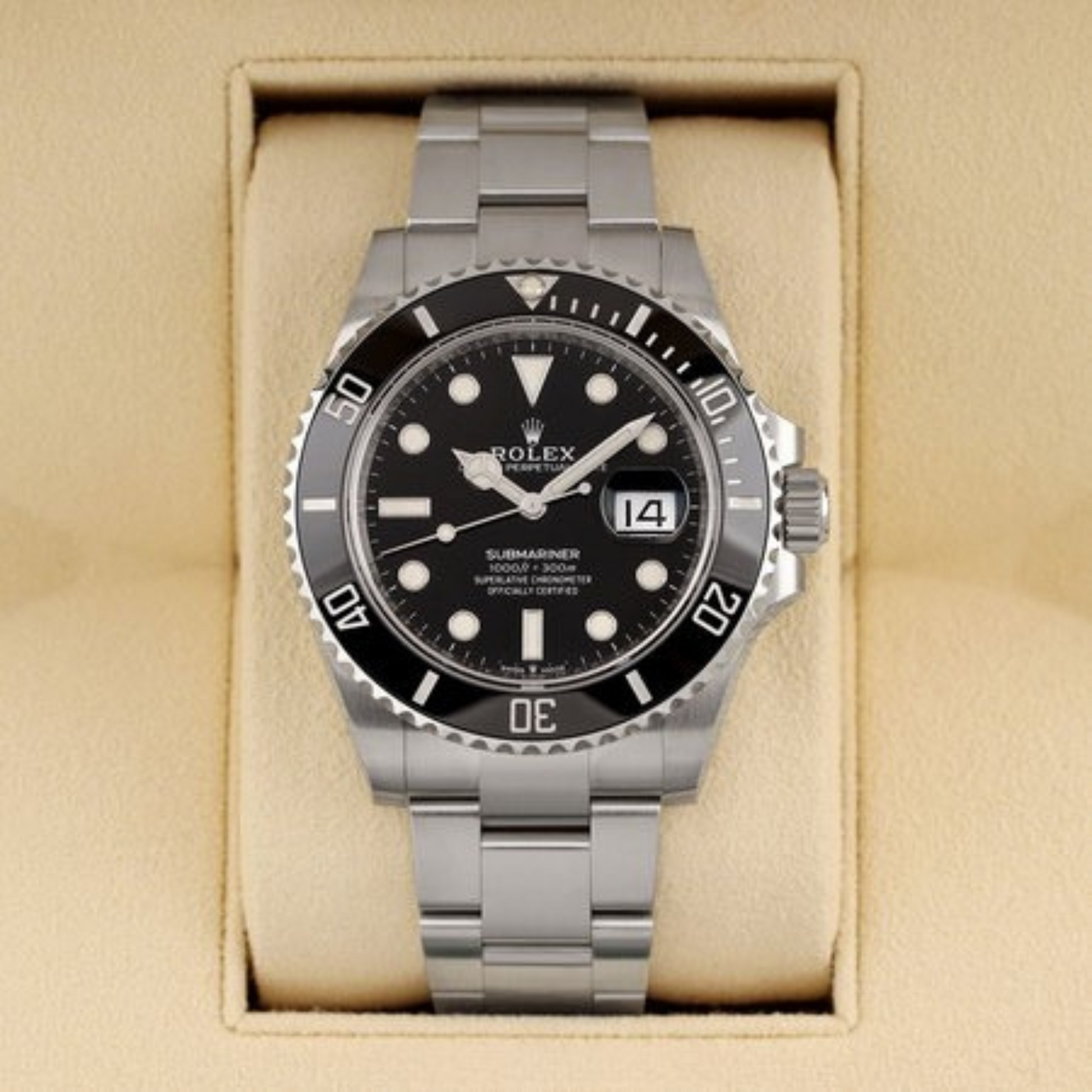 The Rolex Submariner Date (Ref. 126610LN) is the perfect marriage of rugged functionality and refined design. Featuring a bold 41mm Oystersteel case, classic black Cerachrom ceramic bezel, and luminous Chromalight dial, this piece is made for both the deep sea and daily wear.